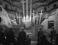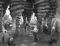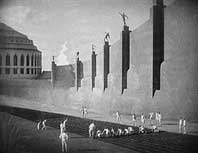 Im Haus der Söhne lebt auch Freder, Joh Fredersens einziger Sohn. Doch eines Tages beschließt Freder, in die Arbeiterstadt hinabzusteigen, um dort die engelsgleiche Maria zu suchen, die den Arbeitern mit ihren Predigten von Liebe und Klassenlosigkeit Hoffnung schenkt. Als Freder die Lebensverhältnisse der Arbeiter sieht und Marias Predigt hört, ist er derart erschüttert, daß er sich entschließt, einer der ihren zu werden. | ||
